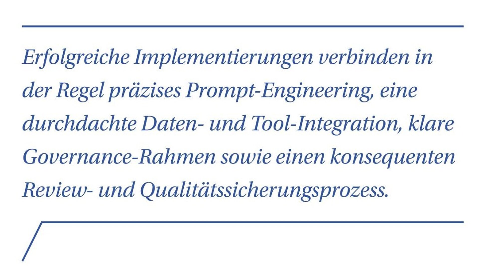 mentierungen verbinden in der Regel präzises Prompt- Engineering, eine durchdachte Daten- und Tool-Integration, klare Governance-Rahmen sowie einen konsequenten Review- und Qualitätssicherungsprozess. Im Folgenden stellen wir Ansätze vor, die sich besonders bewährt haben.